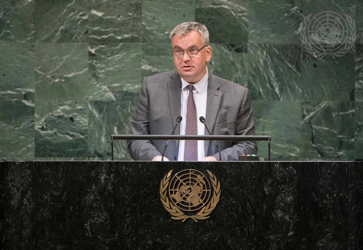 Jürgen Schulz, Deputy Permanent Representative of Germany to the United Nations, makes remarks during the continuation of the Nelson Mandela Peace Summit.