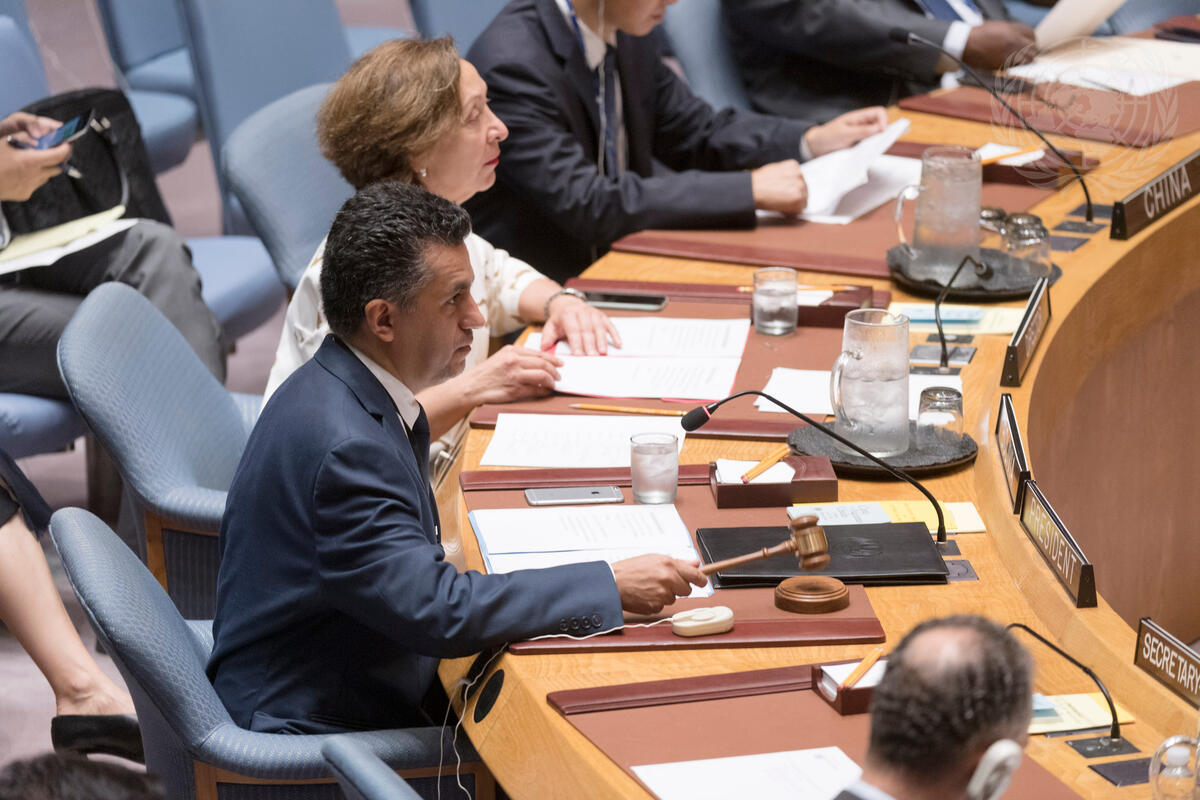 Sacha Sergio Llorentty Solíz, Permanent Representative of Bolivia to the UN and Security Council President for the month of October, chairs the Security Council meeting on the situation in Colombia.