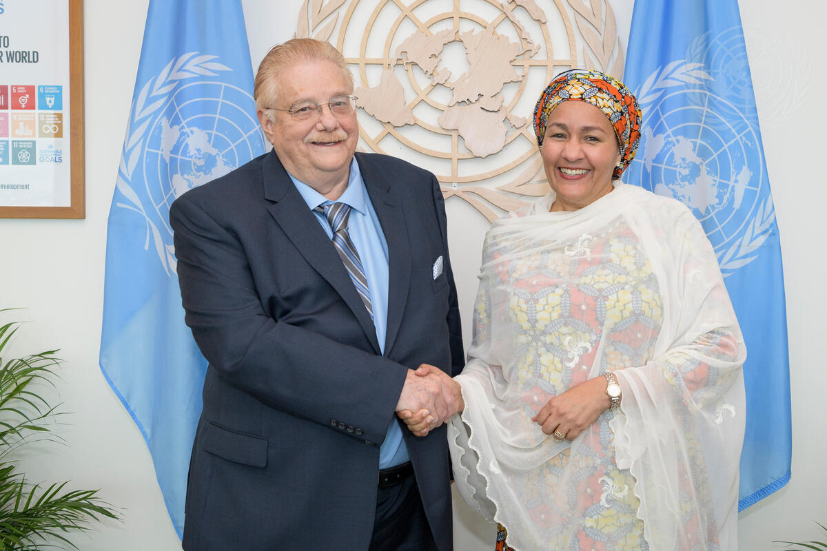 Deputy Secretary-General Amina Mohammed (right) meets with Paul Oquist Kelley, Minister-Private Secretary for National Policies of the President of the Republic of Nicaragua.