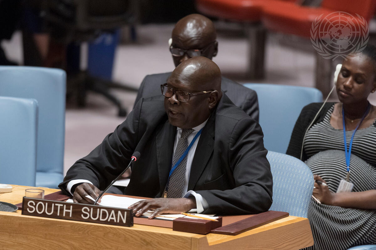 Akuei Bona Malwal, Permanent Representative of the Republic of South Sudan to the United Nations, addresses the Security Council meeting on the situation in the Sudan and South Sudan.
