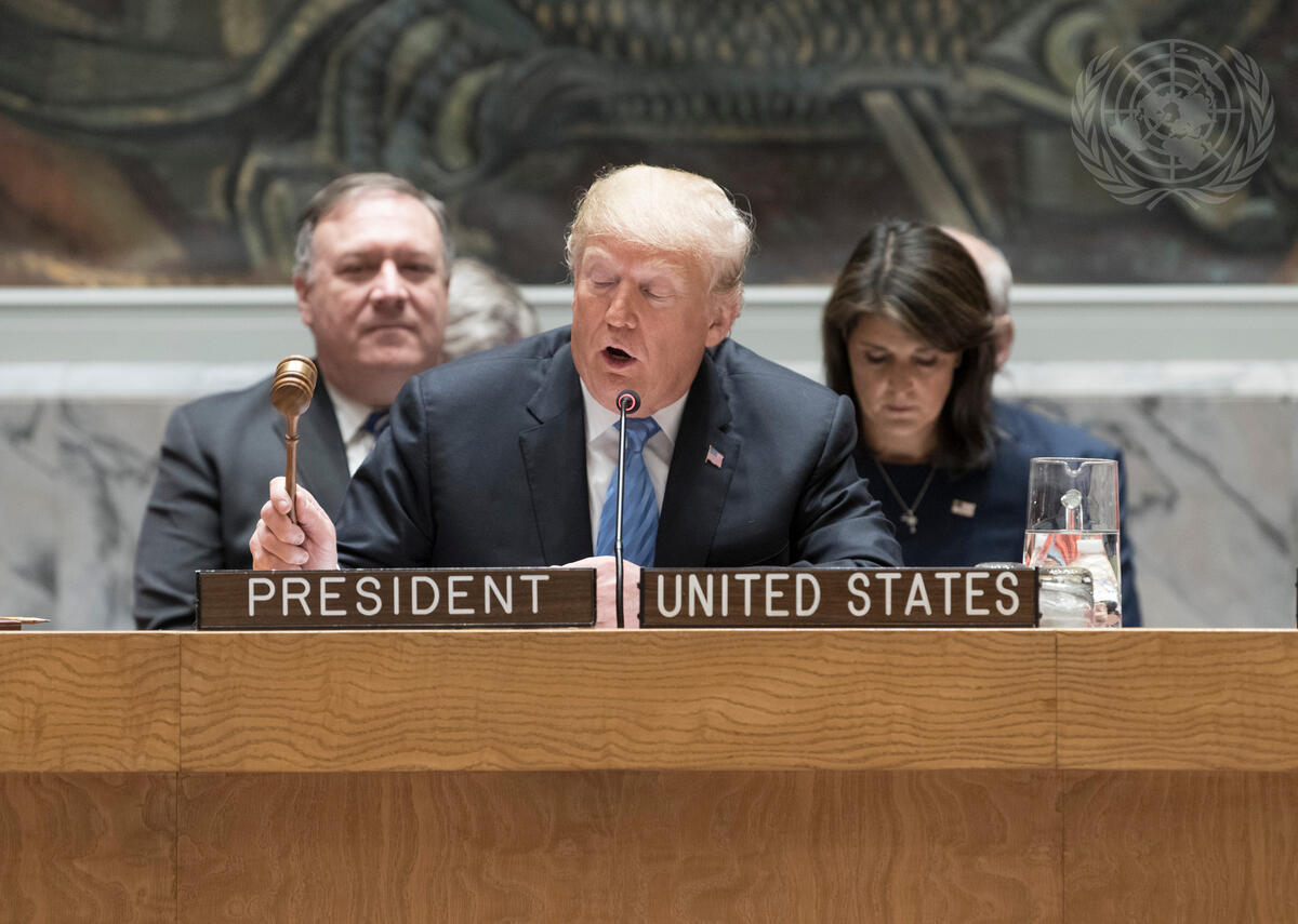 Donald Trump, President of the United States of America and Security Council President for the month of September, chairs the Security Council meeting on the maintenance of international peace and security, with a focus on non-proliferation of weapons of mass destruction.