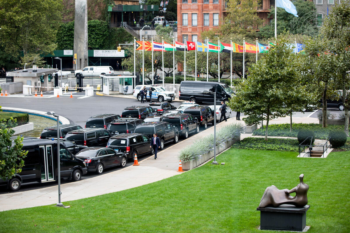 Rows of cars lined up in the Secretariat circle on the second day of the General Assembly's seventy-third general debate.