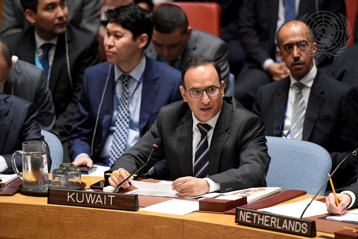 Mansour Al-Otaibi, Permanent Representative of the State of Kuwait to the UN, addresses the Security Council meeting on the situation in the Middle East, including the Palestinian question.