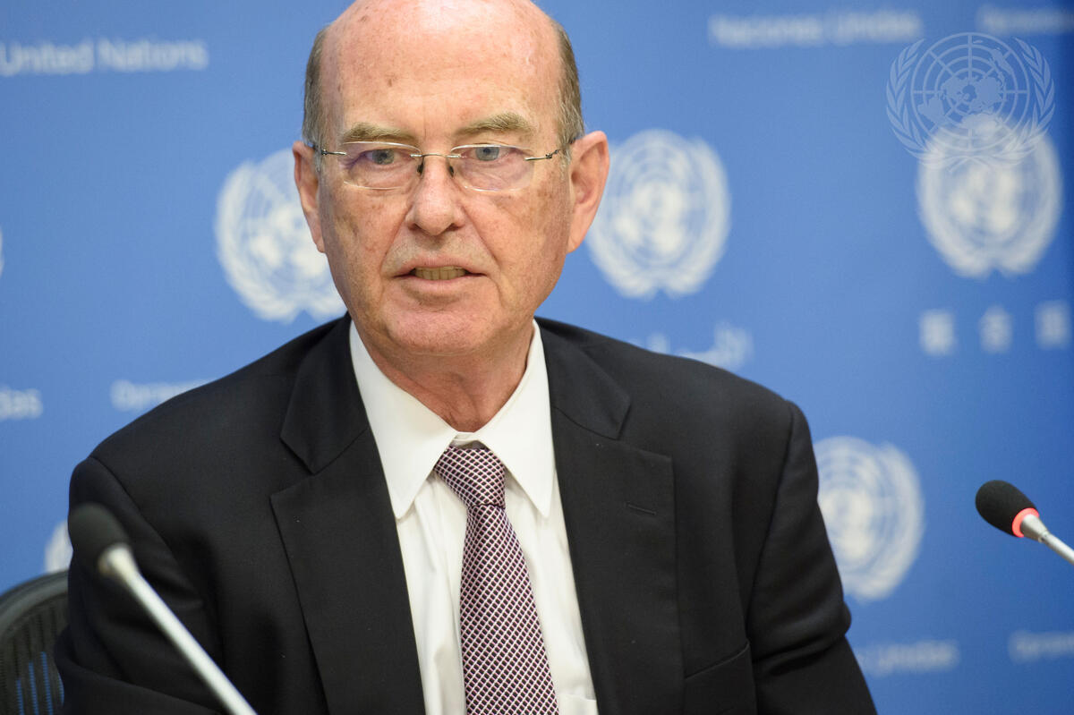 Michael Eckhart, Managing Director of Citigroup, speaks at a press conference by the United Nations Environment Programme (UNEP) on the launch of REN21’s Renewables 2018 Global Status Report. REN21 is shorthand for the Renewable Energy Policy Network for the 21st Century.