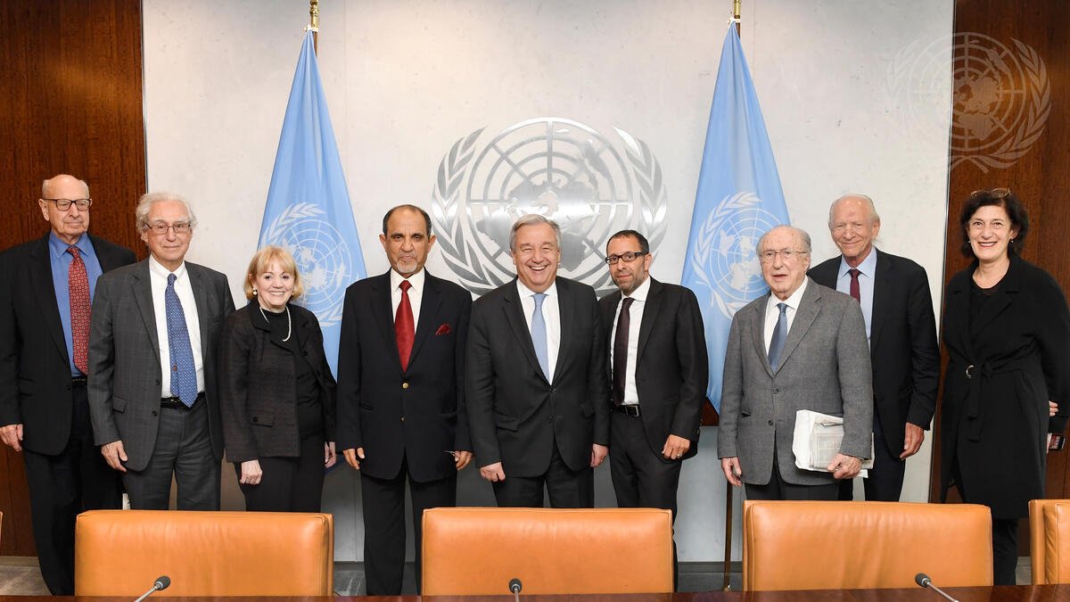 Secretary-General António Guterres (centre) meets with members of the U.S./Middle East Project.