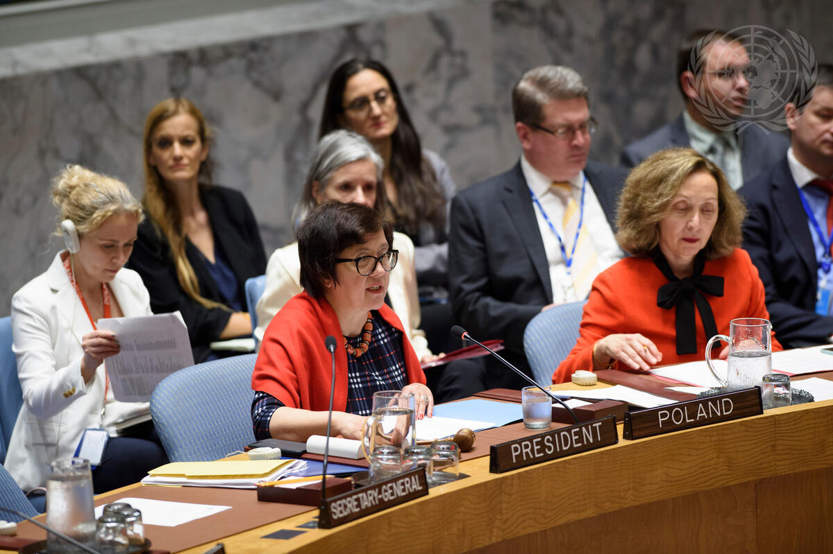 Joanna Wronecka, Permanent Representative of the Republic of Poland to the United Nations and President of the Security Council for the month of May, chairs the Security Council meeting on the situation in South Sudan.