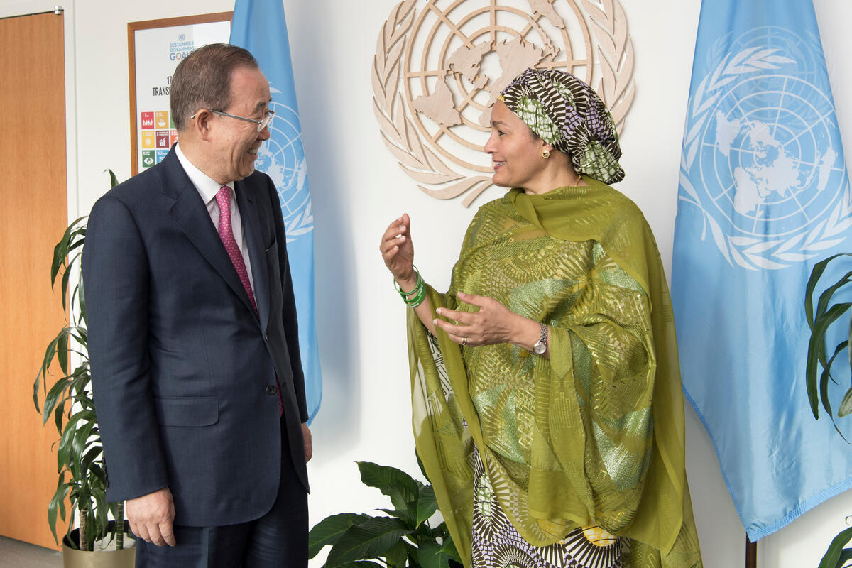 Deputy Secretary-General Amina Mohammed (right) meets with former UN Secretary-General Ban Ki-moon.