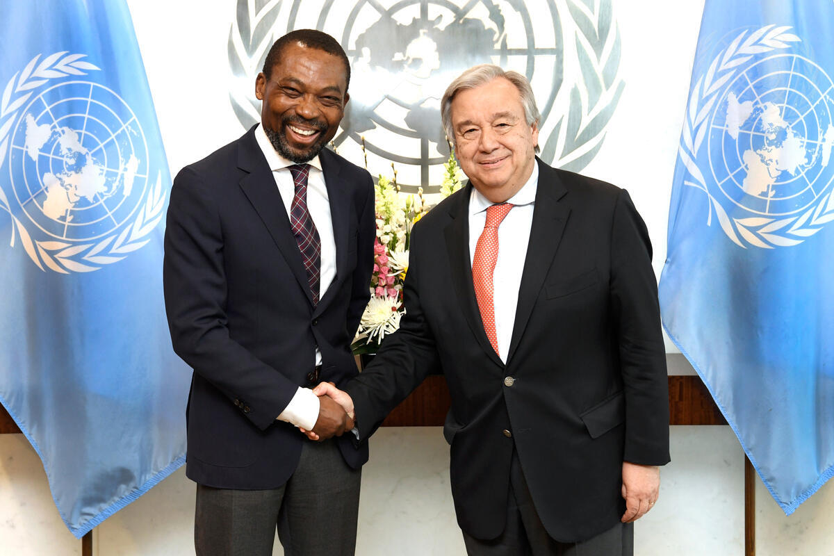 Secretary-General António Guterres (right) meets with Judge Chile Eboe-Osuji, President of the International Criminal Court (ICC).