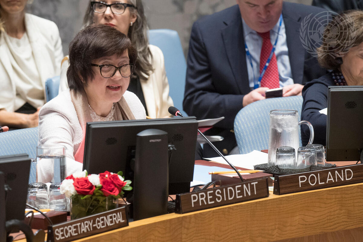 Joanna Wronecka, Permanent Representative of the Republic of Poland to the United Nations and President of the Security Council for the month of May, chairs the Security Council meeting on the situation in Syria.