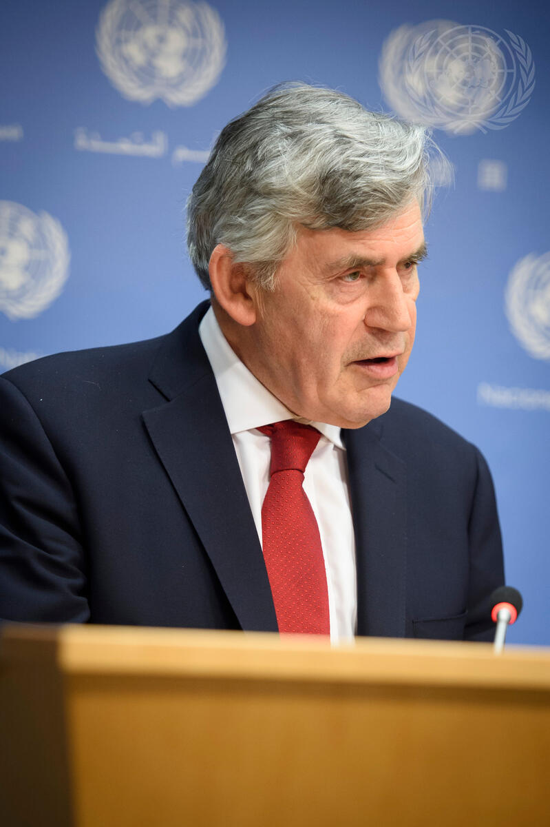 Gordon Brown, United Nations Special Envoy for Global Education and Chair of the International Commission on Financing Global Education Opportunity, briefs journalists on the launch of International Finance Facility for Education as a guest at the noon briefing.