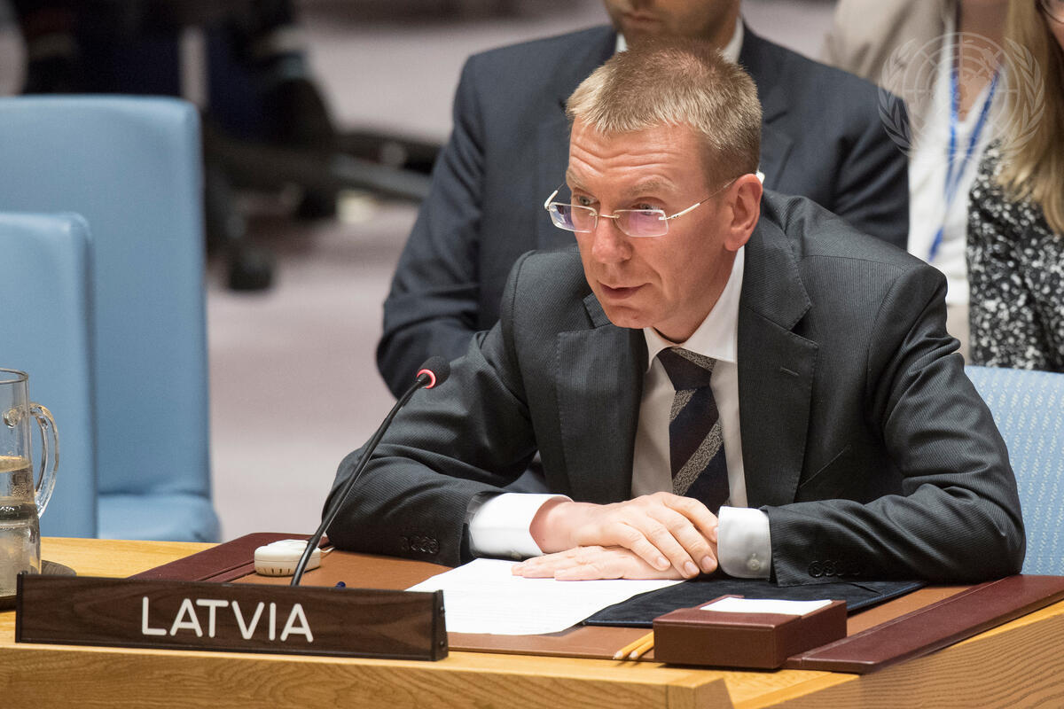 Edgars Rinkevics, Minister for Foreign Affairs of the Republic of Latvia, addresses the Security Council meeting on the maintenance of international peace and security, with a focus on upholding international law within the context.