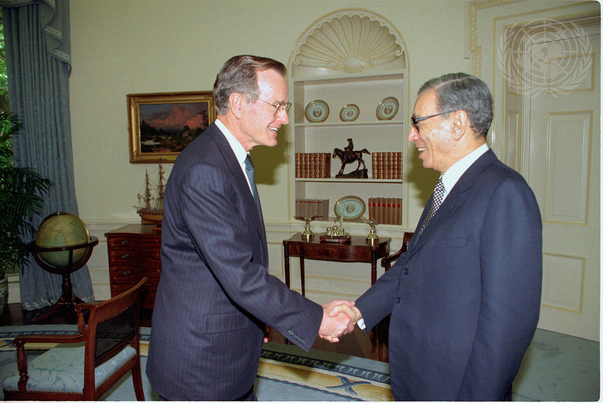 Boutros Boutros-Ghali, Secretary-General of the United Nations, meets with George Bush, President of the United States of America.