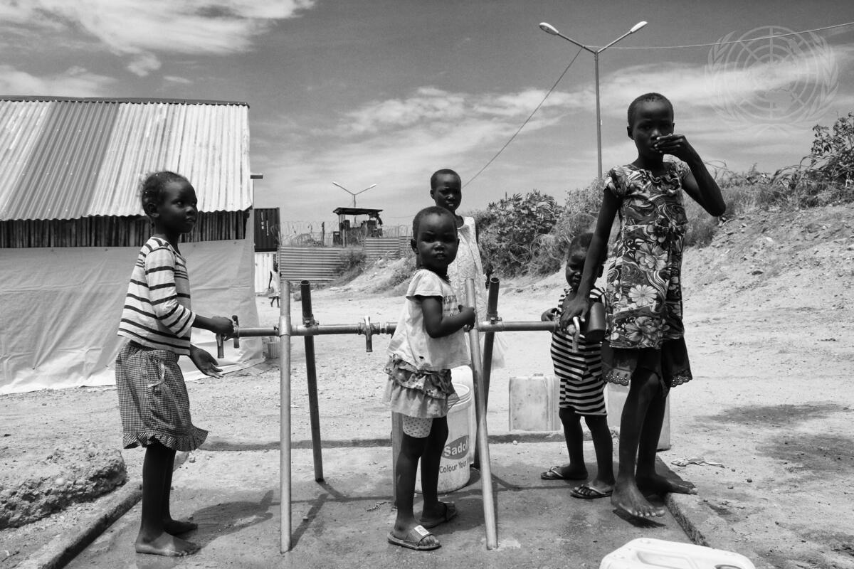Children at a water point at protection of civilians site 1 in Juba, South Sudan.