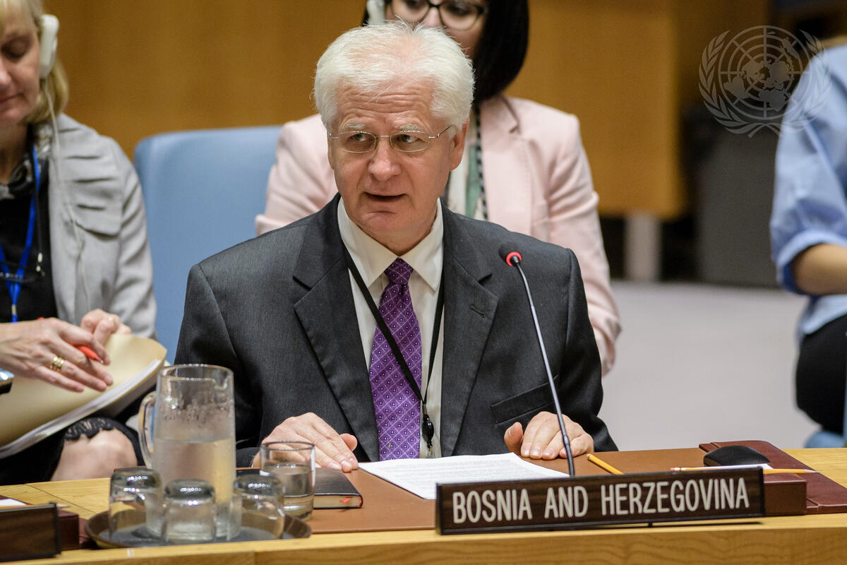Miloš Vukašinovic, Permanent Representative of Bosnia and Herzegovina to the UN, addresses the Security Council meeting on the situation in Bosnia and Herzegovina.
