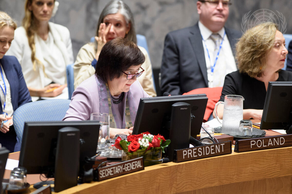 Joanna Wronecka, Permanent Representative of the Republic of Poland to the United Nations and President of the Security Council for the month of May, chairs the Security Council meeting on the situation in Sudan and South Sudan.