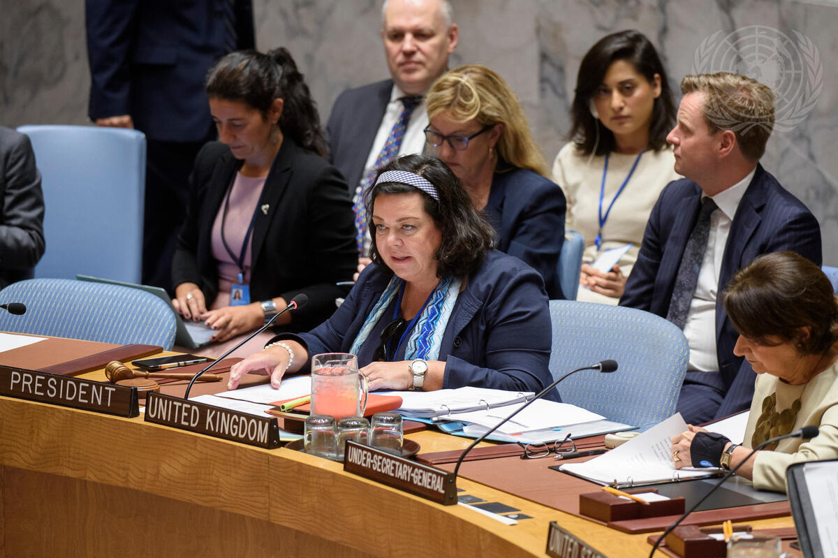 Karen Pierce, Permanent Representative of the United Kingdom and President of the Security Council for the month of August, chairs the Security Council meeting on the situation in the Middle East, including the Palestinian question.
