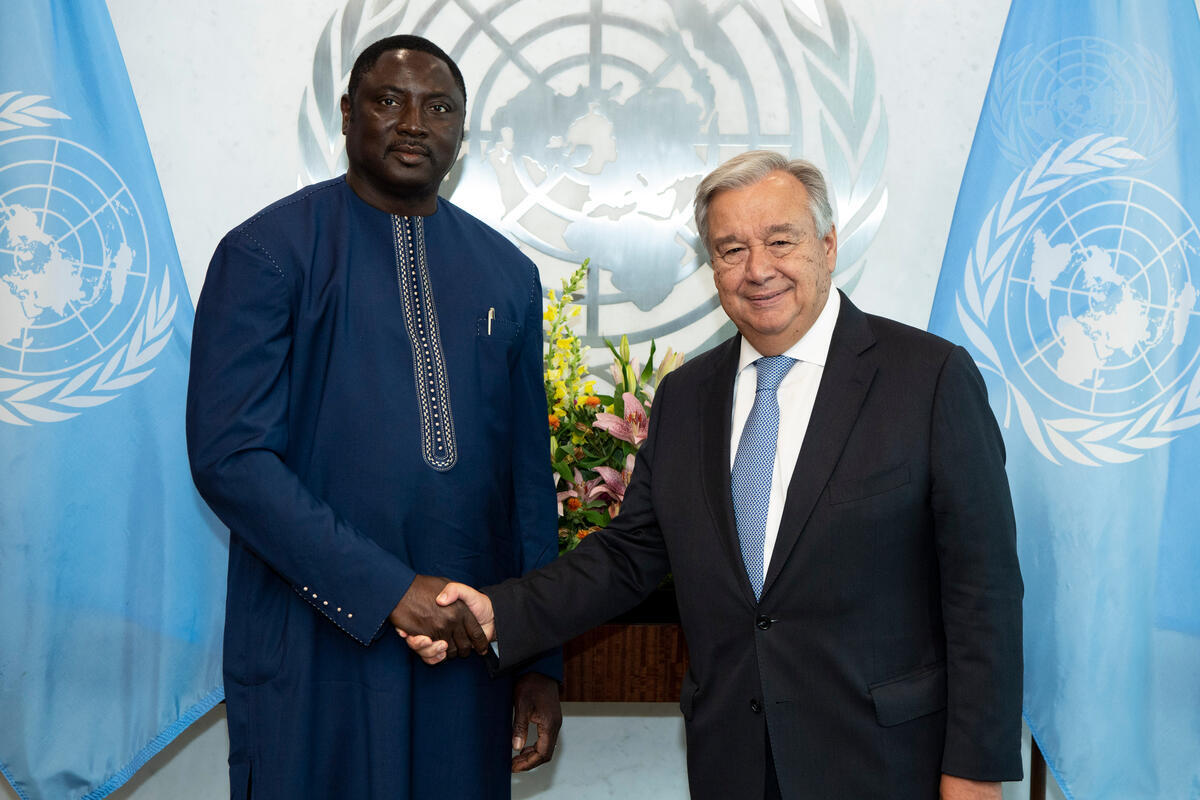 Secretary-General António Guterres (right) meets with Mamadou Tangara, Minister for Foreign Affairs, International Cooperation and Gambians Abroad of the Republic of Gambia.