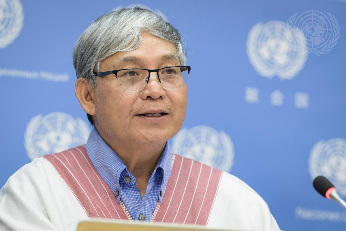 Prasert Trakansuphakon, Karen from Thailand, briefs press on the occasion of the International Day of World’s Indigenous Peoples.