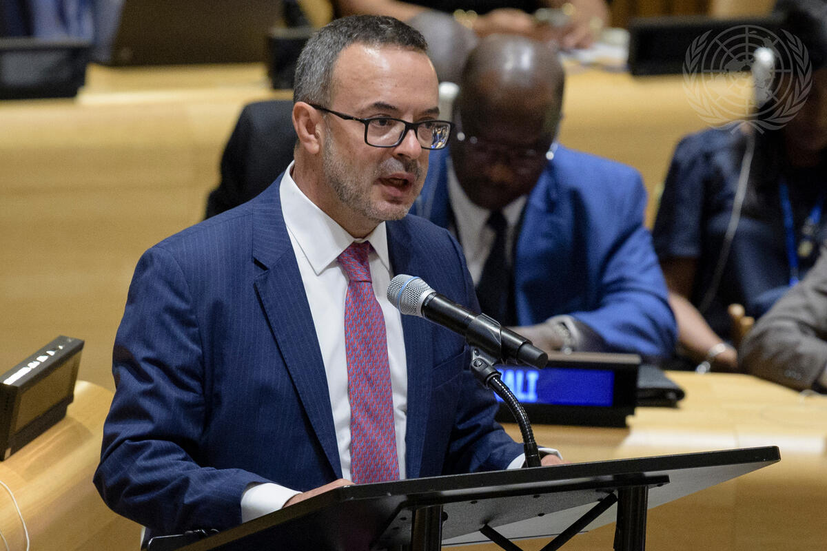 Jorge Andrés Iglesias Mori, Deputy Permanent Representative of Chile to the UN, speaks during the General Assembly meeting during which it approved the appointment of Michelle Bachelet of Chile as the new United Nations High Commissioner for Human Rights. Ms. Bachelet succeeds Zeid Ra'ad Al Hussein of Jordan, who has served as the High Commissioner for the past four years.