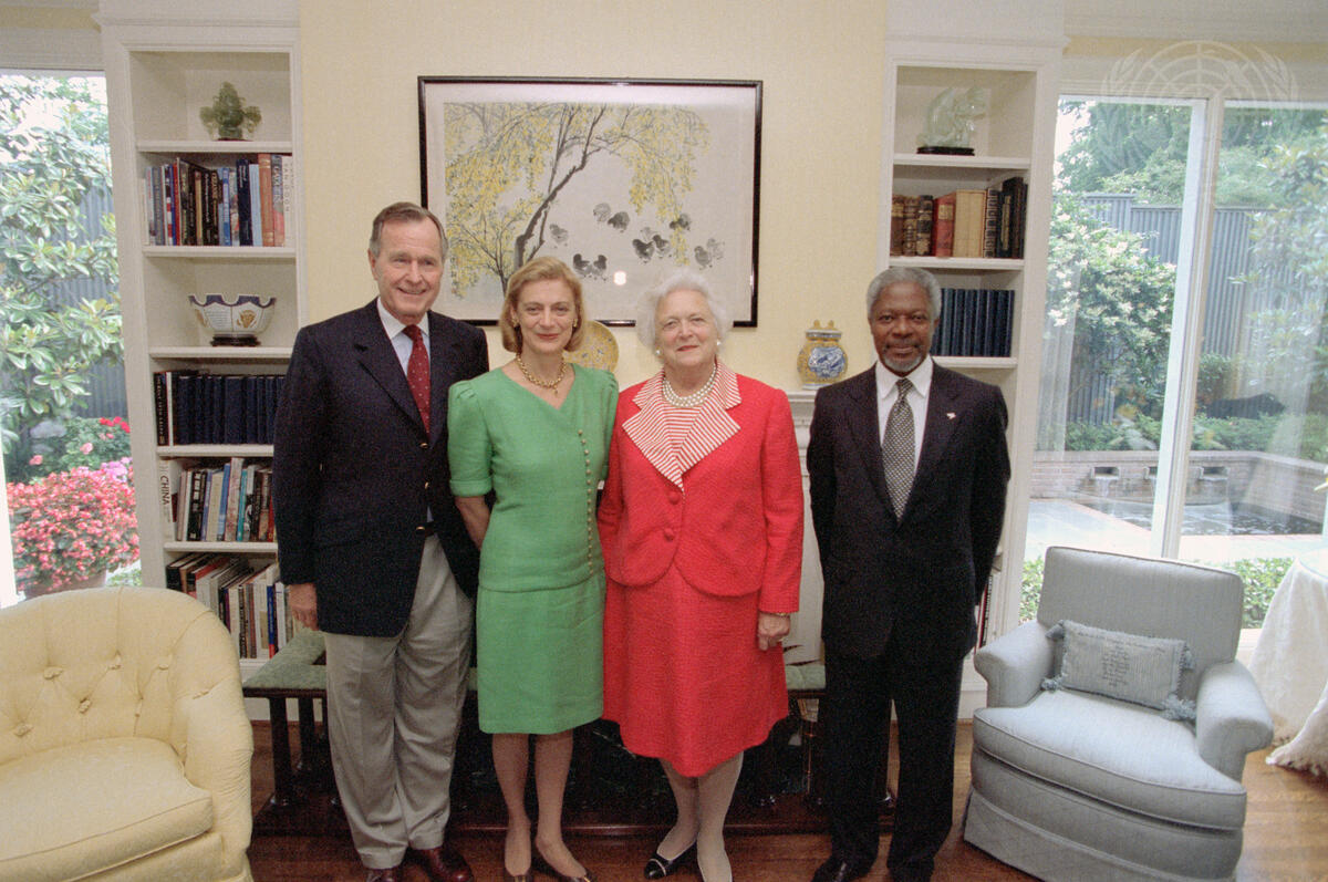 Kofi Annan, Secretary-General of the United Nations, and spouse Nane Annan, visit George Bush, former President of the United States of America, and Barbara Bush, former First Lady.