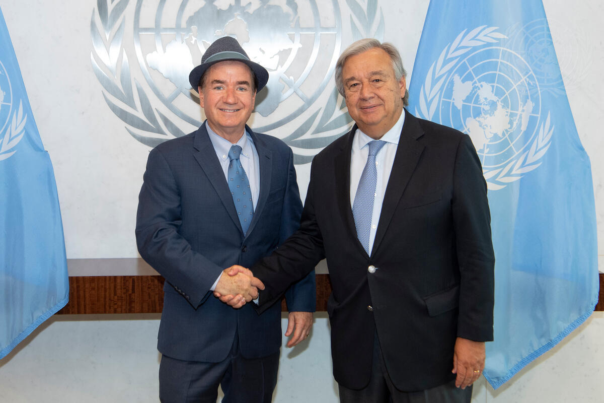Secretary-General António Guterres (right) meets with Ed Royce, United States Congressman.