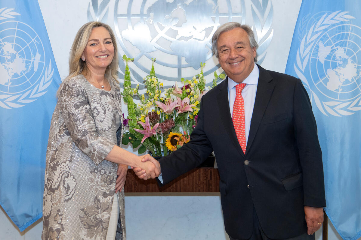 Maria Angela Zappia (left), new Permanent Representative of the Republic of Italy to the UN, presents her credentials to Secretary-General António Guterres.