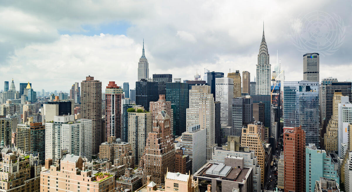 A view of the Manhattan skyline as seen from UN Headquarters, facing west.