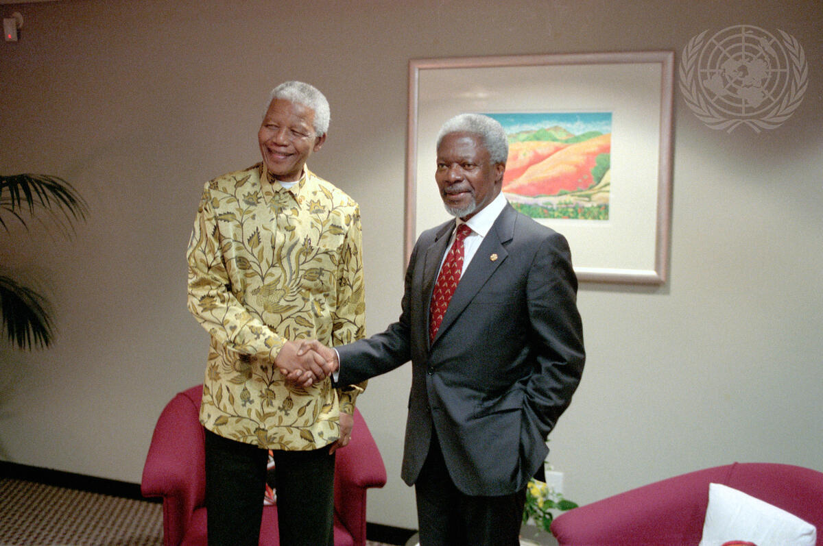 Kofi Annan, Secretary-General of the United Nations (right), meets with Nelson Mandela, President of South Africa (left).