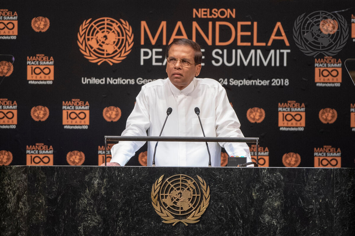 Maithripala Sirisena, President of the Democratic Socialist Republic of Sri Lanka, makes remarks during the Nelson Mandela Peace Summit.