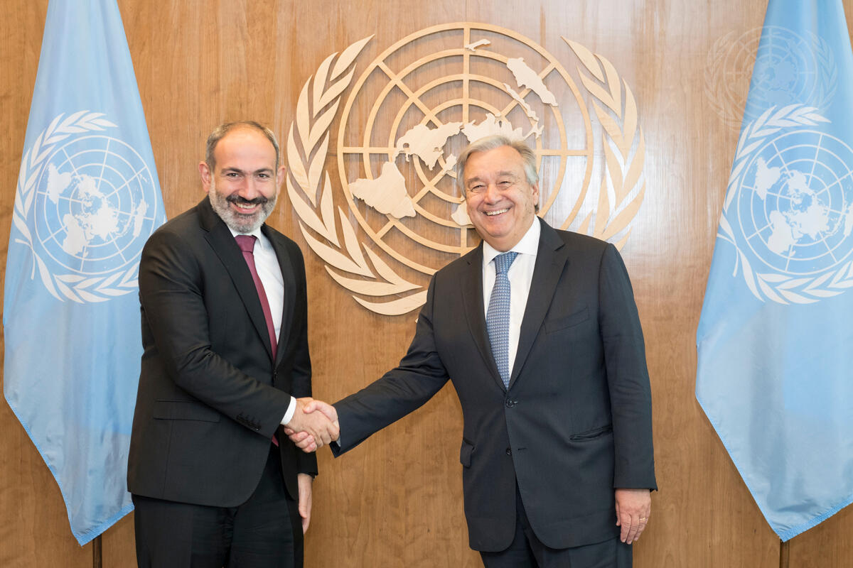 Secretary-General António Guterres (right) meets with Nikol Pashinyan, Prime Minister of the Republic of Armenia.