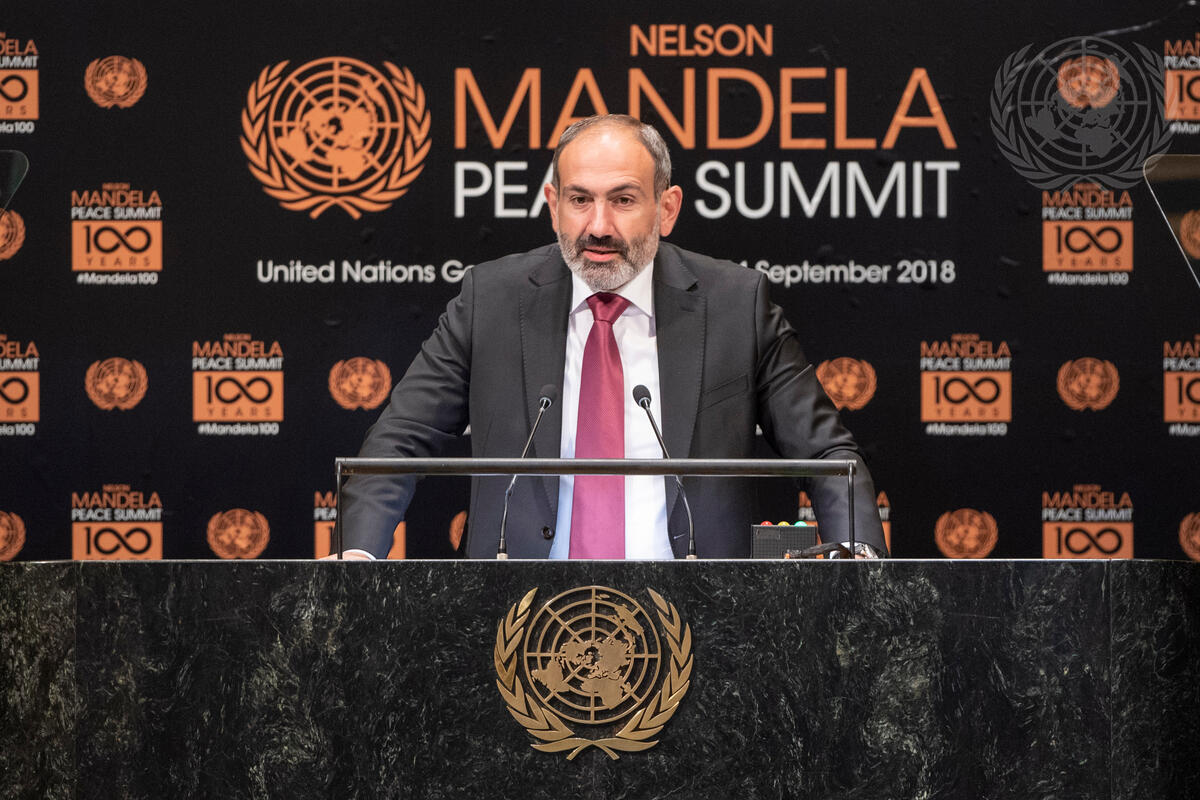 Nikol Pashinyan, Prime Minister of the Republic of Armenia, makes remarks during the Nelson Mandela Peace Summit.