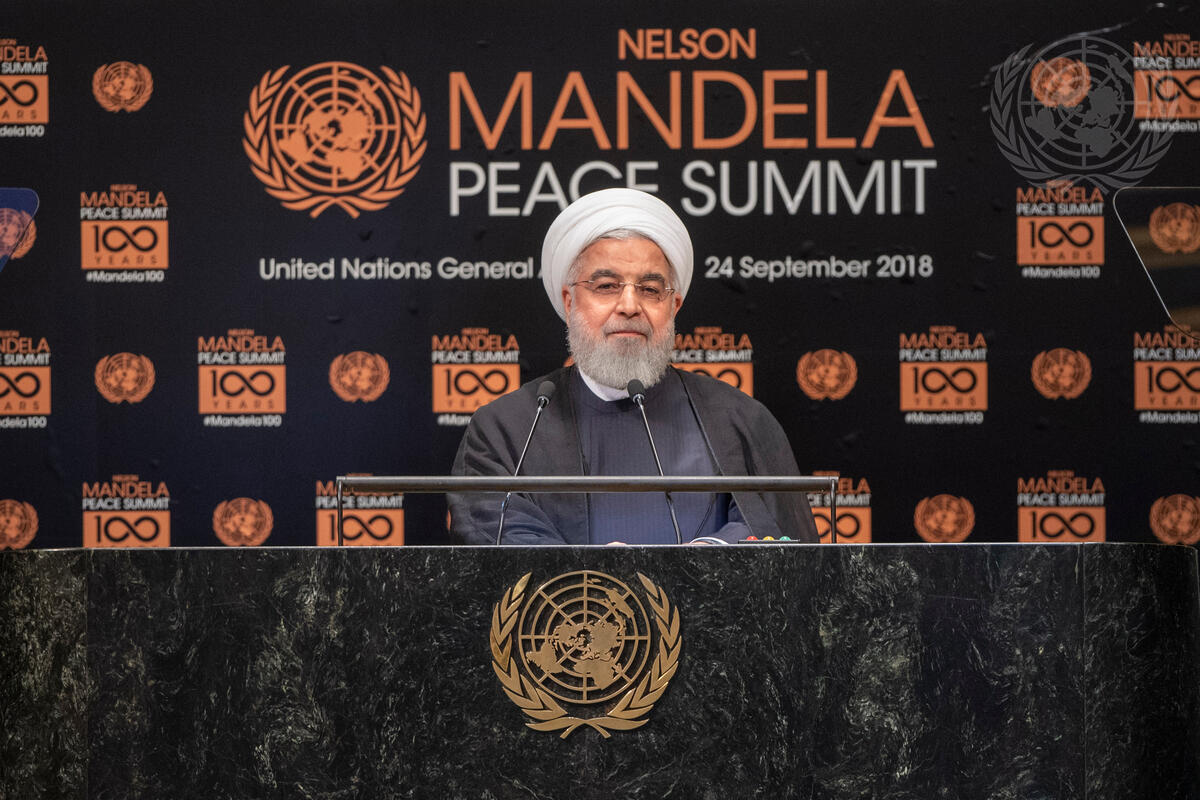 Hassan Rouhani, President of the Islamic Republic of Iran, makes remarks during the Nelson Mandela Peace Summit.