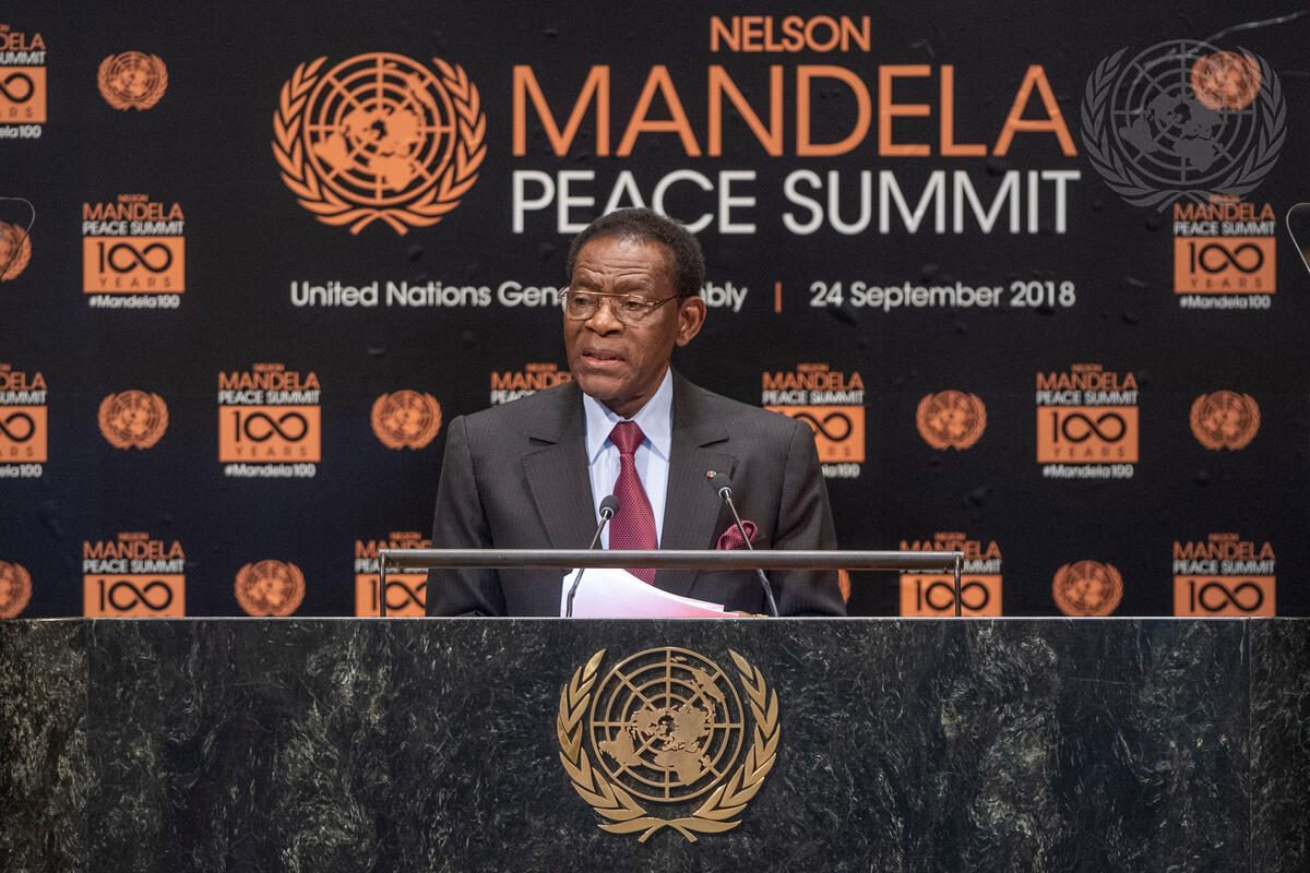 Teodoro Obiang Nguema Mbasogo, President of the Republic of Equatorial Guinea, makes remarks during the Nelson Mandela Peace Summit.