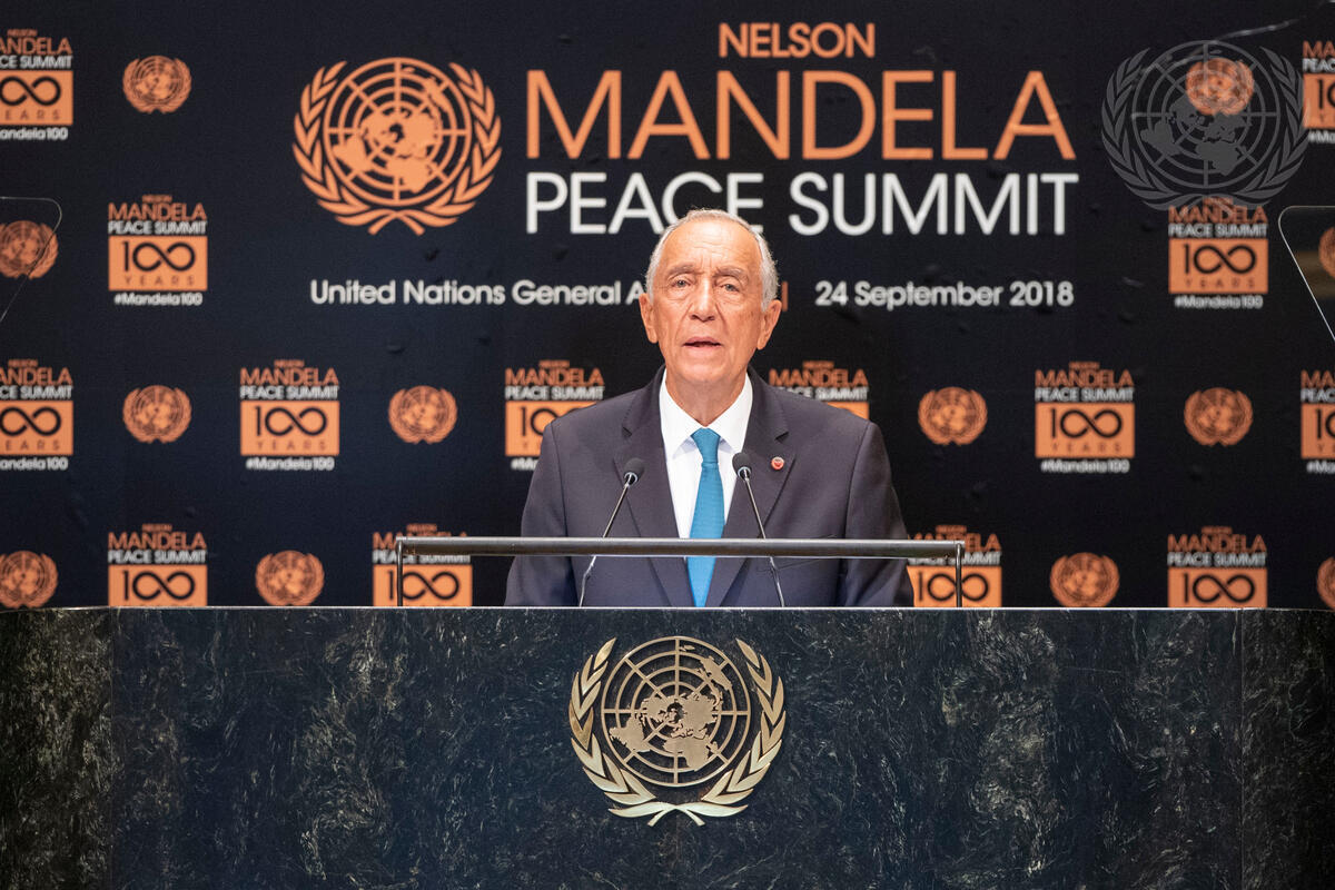 Marcelo Rebelo de Sousa, President of the Portuguese Republic, makes remarks during the Nelson Mandela Peace Summit.