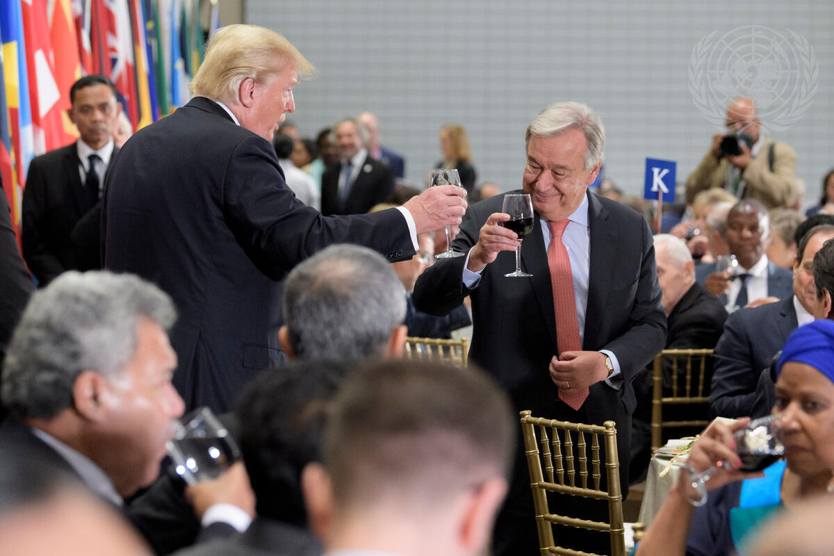 Secretary-General António Guterres (right) shares a toast with Donald Trump, President of the United States of America, at a state luncheon hosted by the Secretary-General for heads of delegations attending the seventy-third session of the General Assembly.