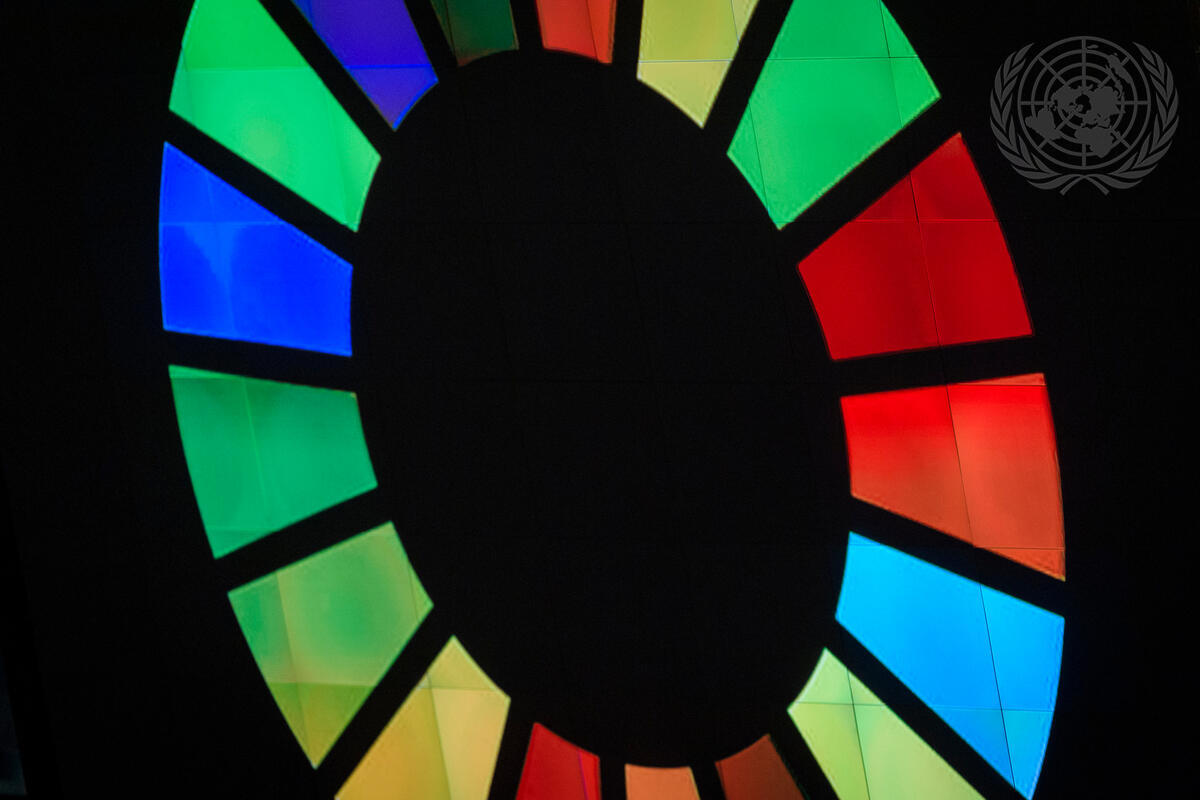 Detail of the Sustainable Development Goals (SDG) logo during the SDG Moment before the opening of the annual general debate. The Moment aims to draw the attention of the world leaders to the importance of taking bold action on the SDGs as they prepare to engage with and address one another at the General Assembly and in the debate.