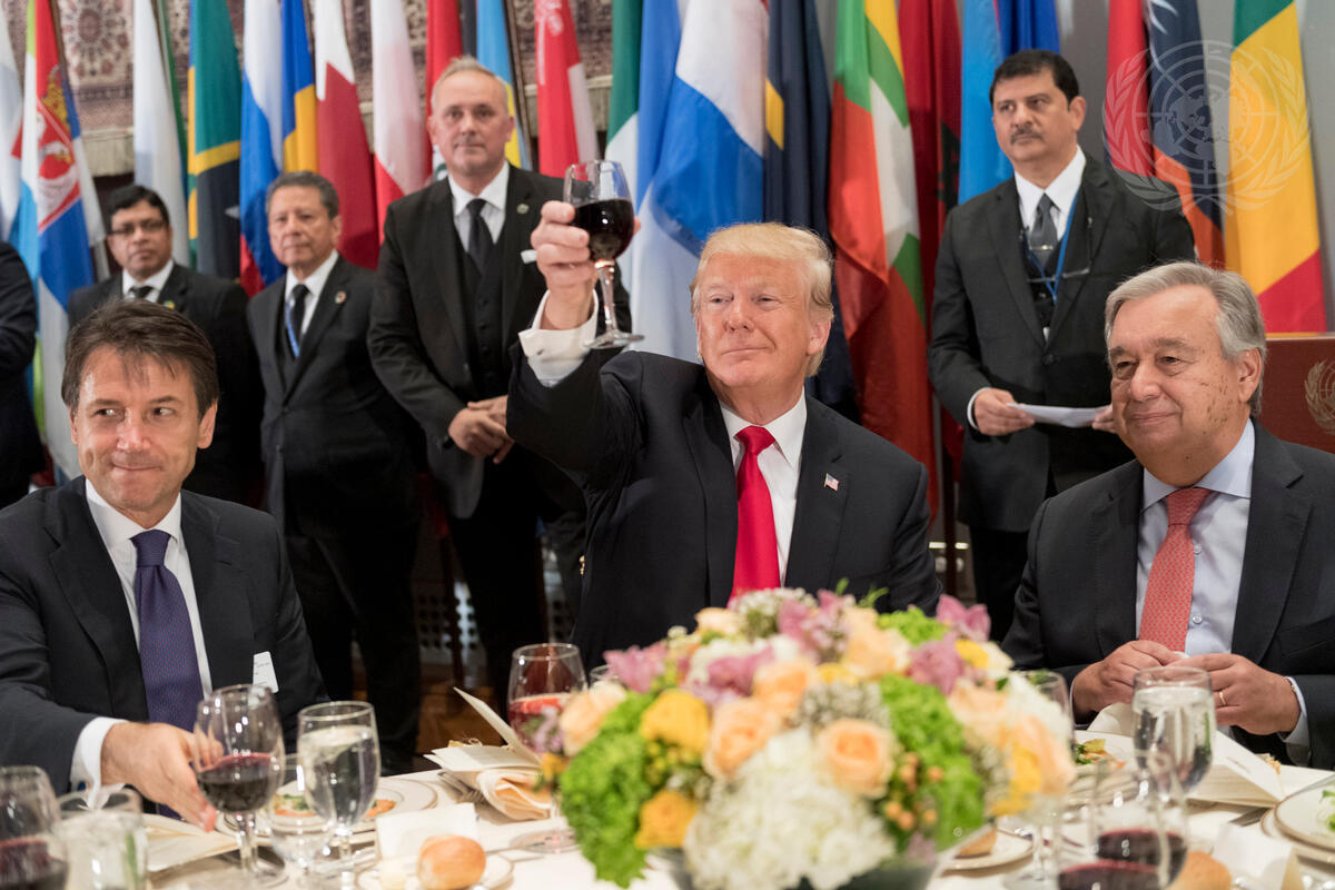 Donald Trump, President of the United States of America, shares a toast at a state luncheon hosted by Secretary-General António Guterres (right) in honour of heads of delegations to the seventy-third session of the General Assembly.