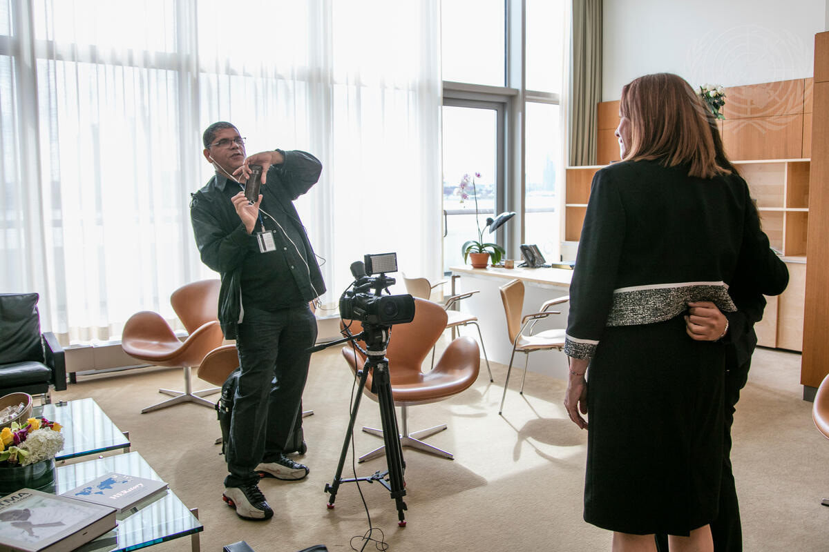 María Fernanda Espinosa Garcés, President of the seventy-third session of the General Assembly, stands for a photo after being interviewed for Telesur, a Venezuelan-based television network.