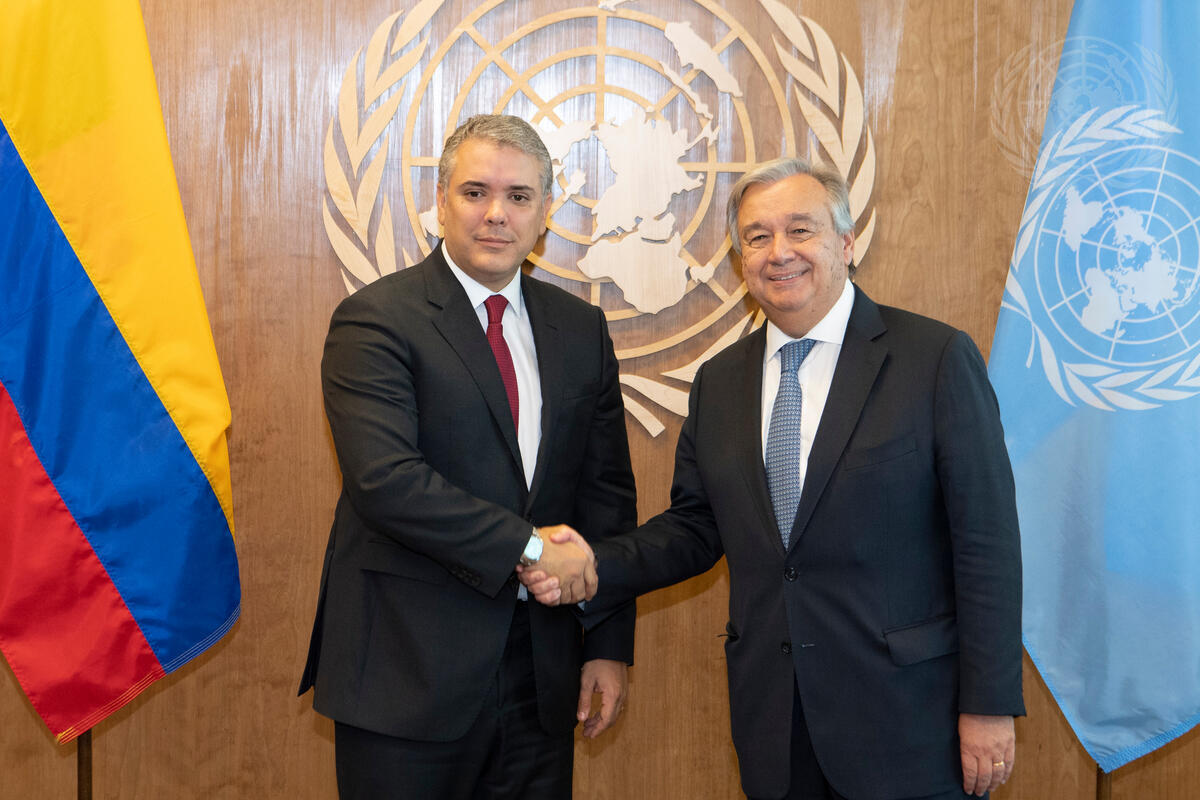 Secretary-General António Guterres (right) meets with Iván Duque Márquez, President of the Republic of Colombia.