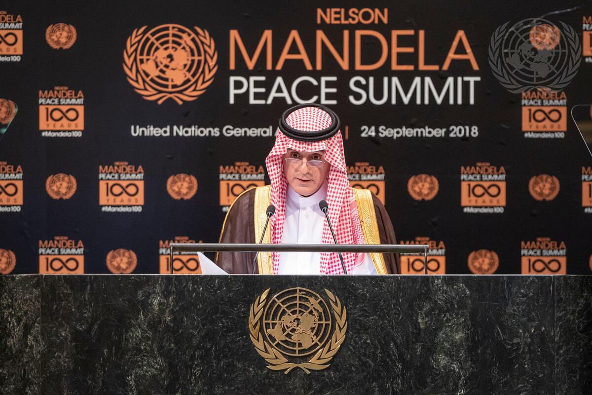 Adel Ahmed Al-Jubeir, Minister for Foreign Affairs of the Kingdom of Saudi Arabia, makes remarks during the Nelson Mandela Peace Summit.
