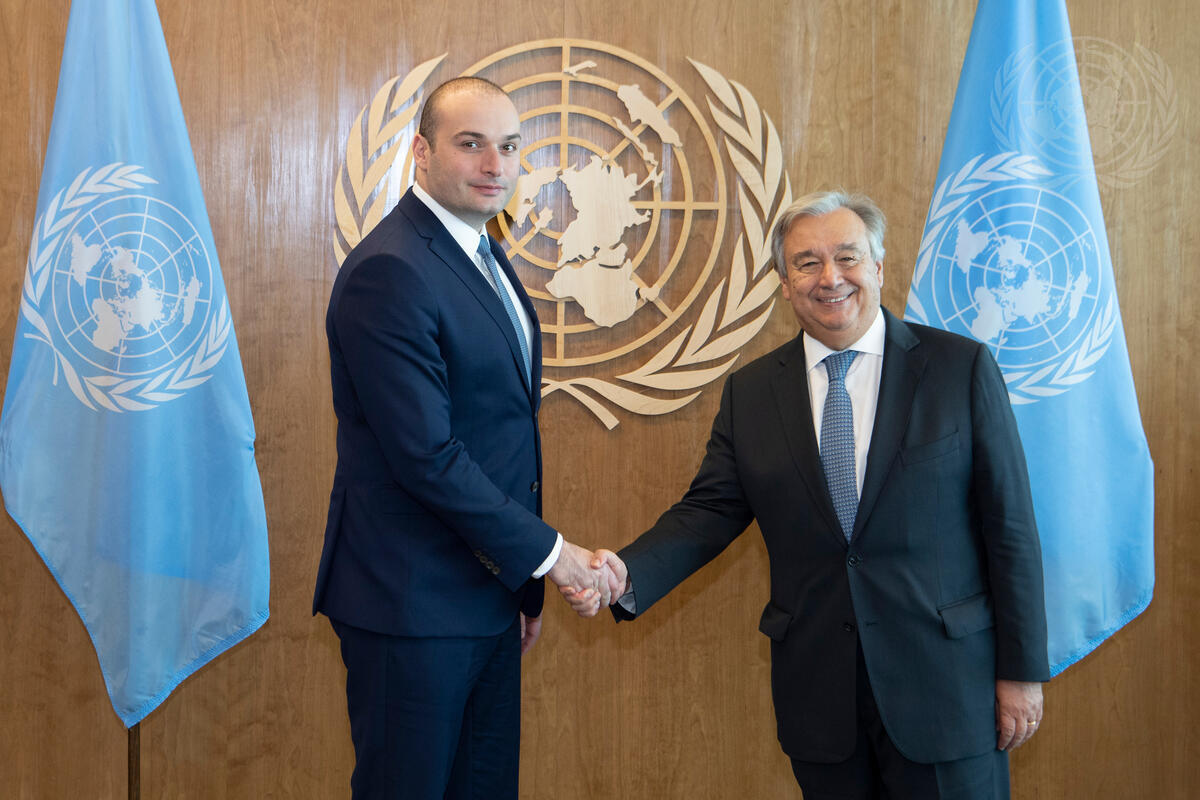 Secretary-General António Guterres (right) meets with Mamuka Bakhtadze, Prime Minister of Georgia.