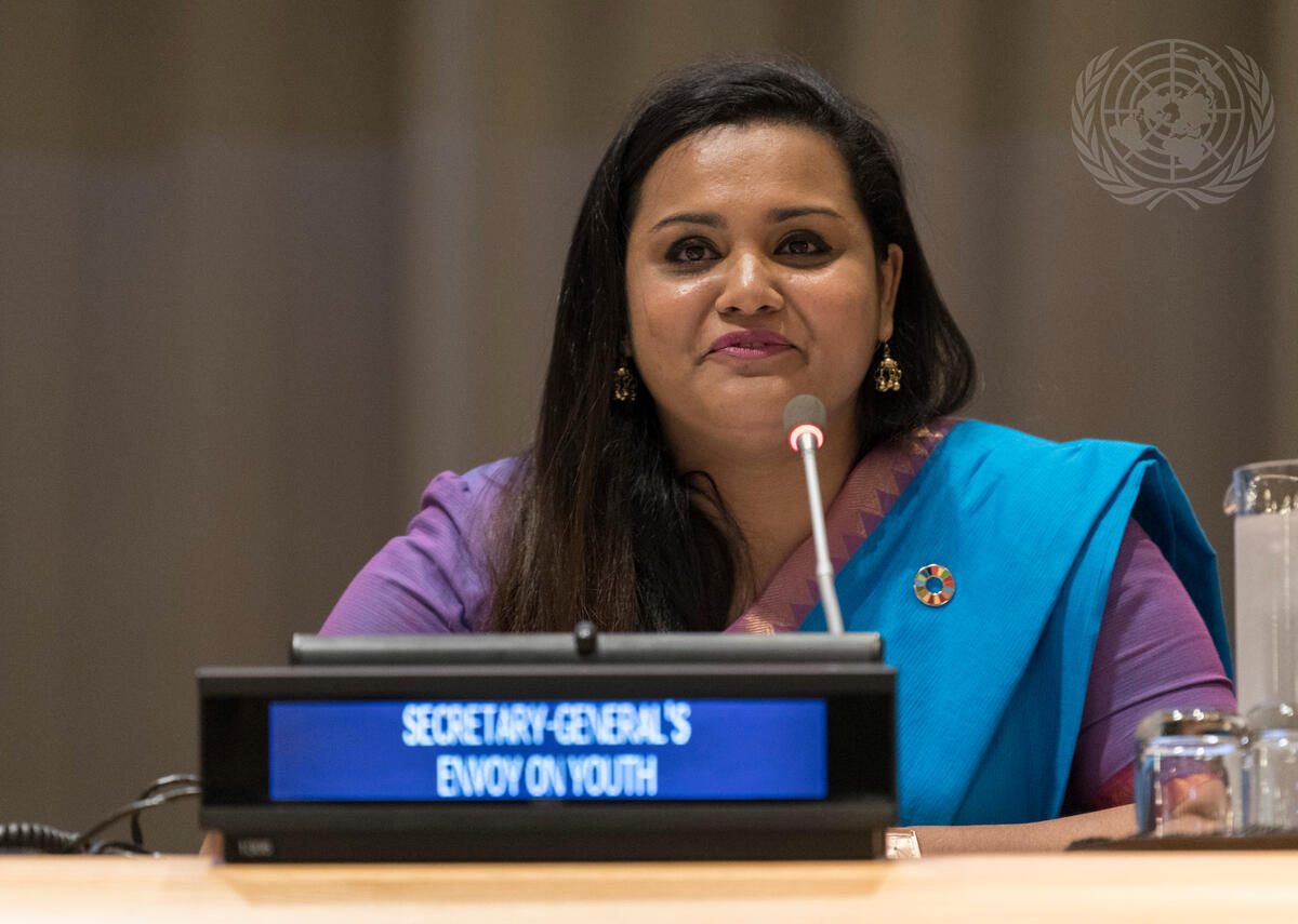 Jayathma Wickramanayake, the Secretary-General’s Envoy on Youth, makes remarks at the high-level event on Youth2030, to launch the United Nations Youth Strategy and the Generation Unlimited Partnership organized by the United Nations Children's Fund (UNICEF).