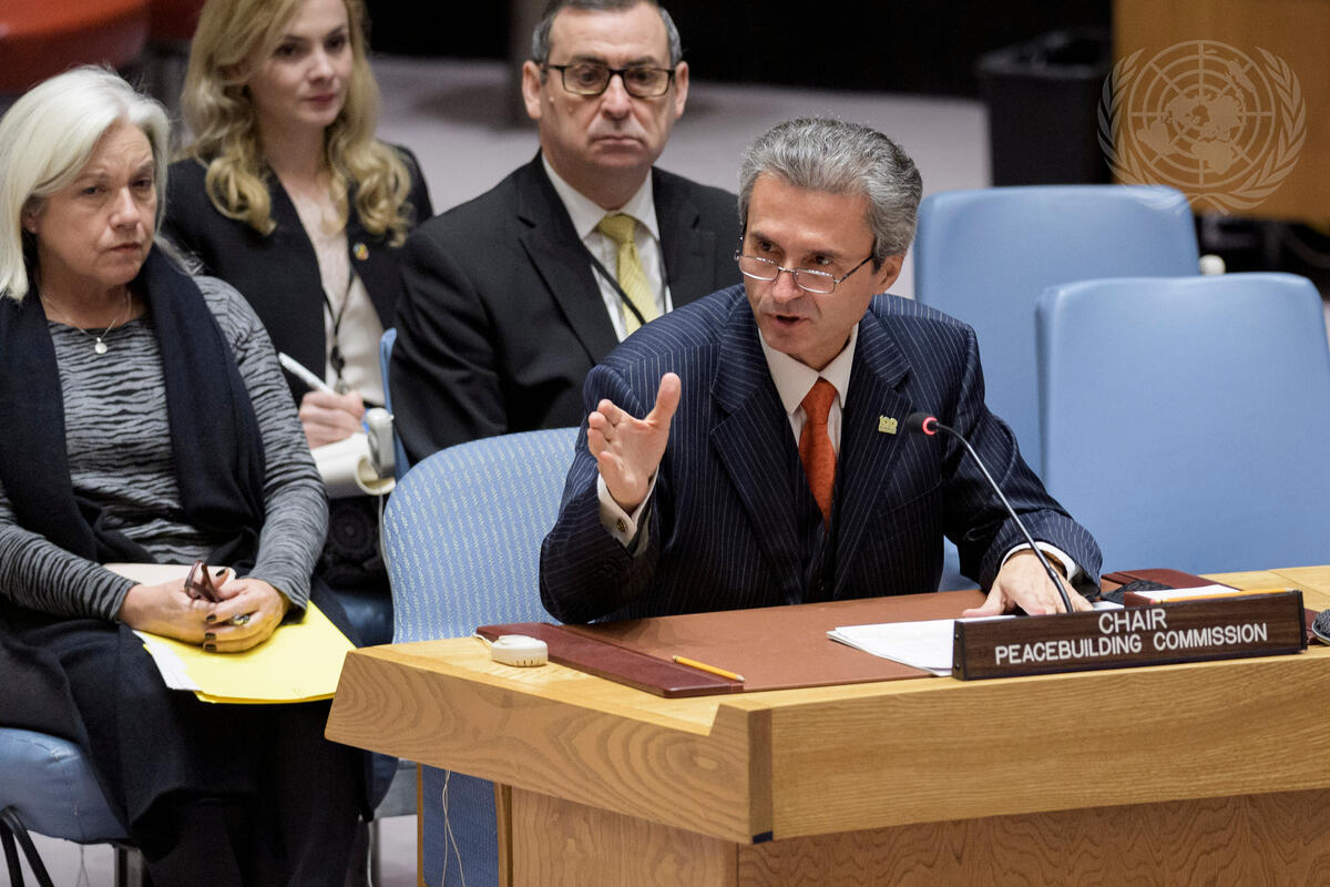 Ion Jinga, Chair of the Peacebuilding Commission and Permanent Representative of Romania to the United Nations, briefs the Security Council meeting on peace and security in Africa. The focus of the meeting was on the United Nations Integrated Strategy for the Sahel, an integrated response to peacebuilding and sustaining peace in the Sahel.
