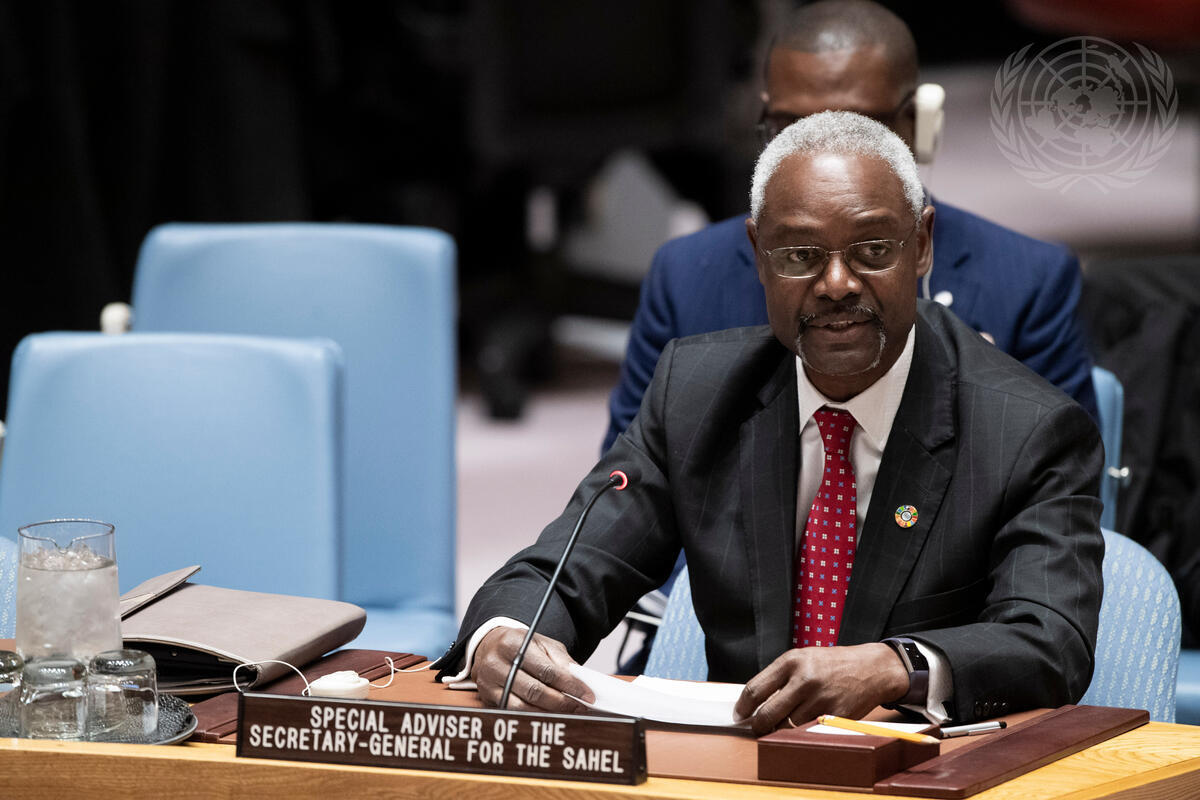 Ibrahim Thiaw, Special Adviser of the Secretary-General for the Sahel, briefs the Security Council meeting on peace and security in Africa. The focus of the meeting was on the United Nations Integrated Strategy for the Sahel, an integrated response to peacebuilding and sustaining peace in the Sahel.