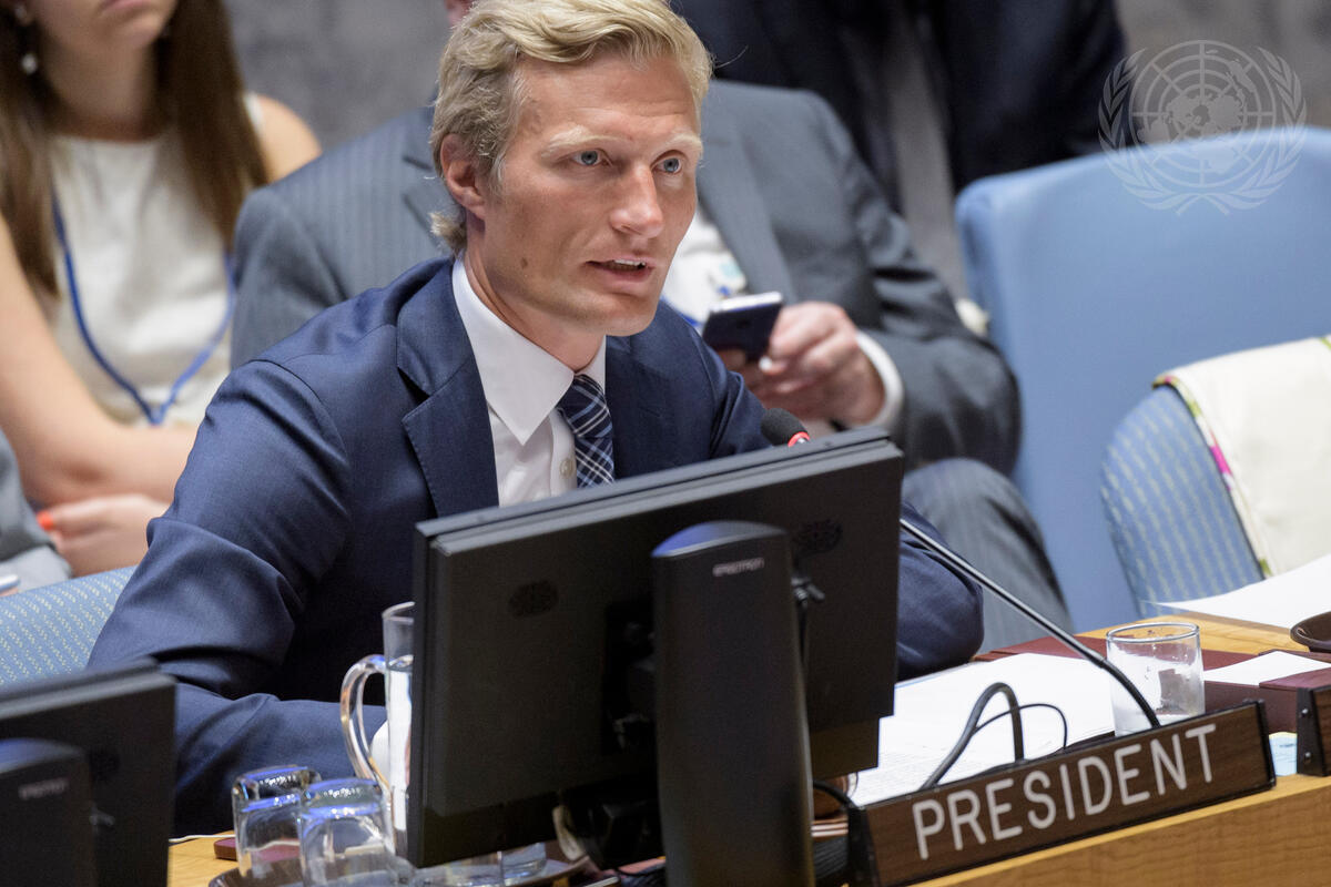 Carl Skau, Security Council Coordinator of Sweden to the UN and President of the Security Council for the month of July, chairs the Security Council meeting on the situation in Libya.
