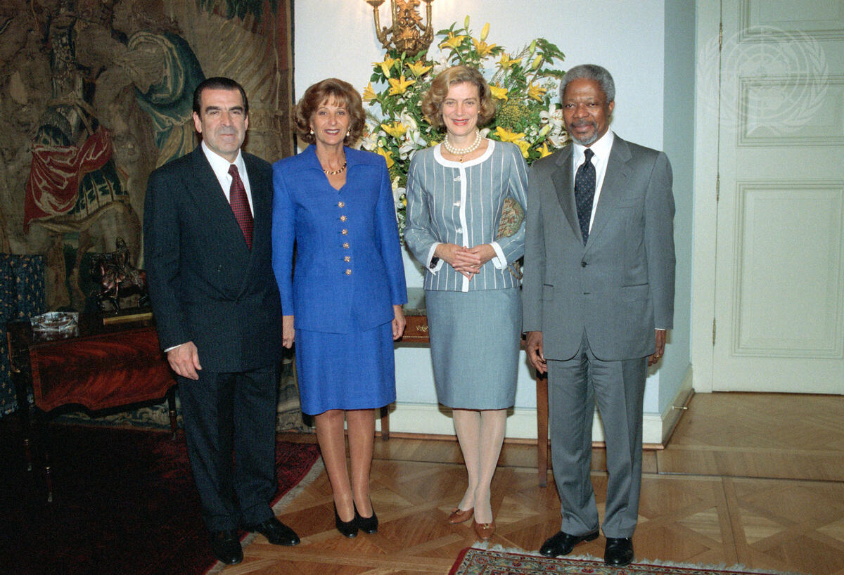 Photo shows Kofi Annan, Secretary-General of the United Nations (right), and spouse Nane Annan (second right), with Eduardo Frei Ruiz-Tagle, President of Chile (left), and Marta Larrachea de Frei, First Lady (second left).