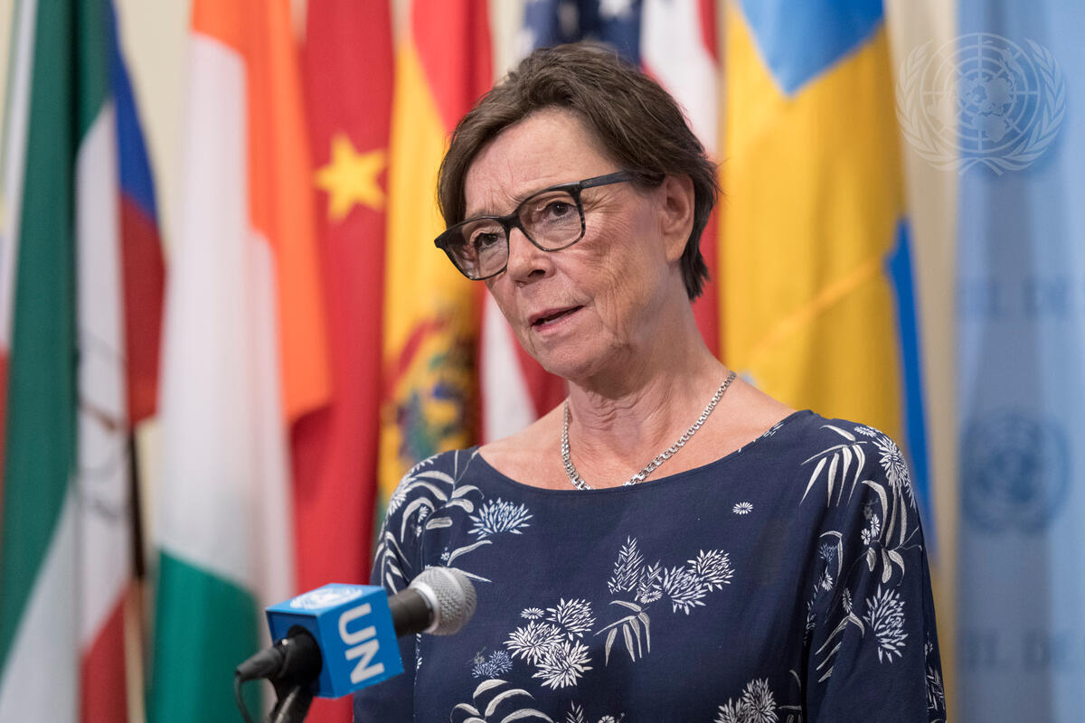Annika Söder, State Secretary of Foreign Affairs of Sweden and President of the Security Council for the month of July, briefs journalists prior to a Security Council meeting on cooperation between the United Nations and the African Union in maintaining international peace and security.
