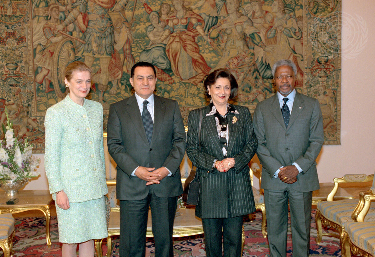 Group photo of Kofi Annan, Secretary-General of the United Nations, and spouse Nane Annan, with Hosni Mubarak, President of the Arab Republic of Egypt, and Suzanne Mubarak, First Lady.