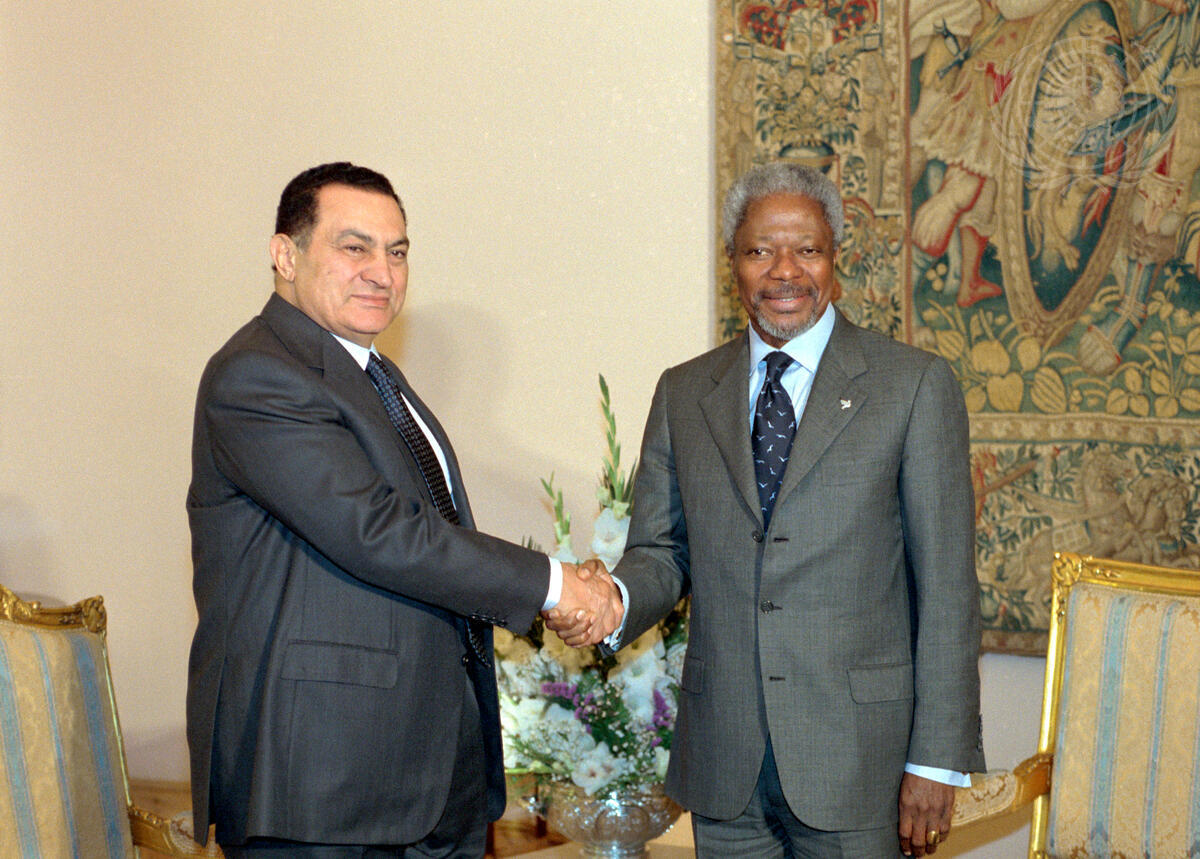 Kofi Annan, Secretary-General of the United Nations, meets with Hosni Mubarak, President of the Arab Republic of Egypt.