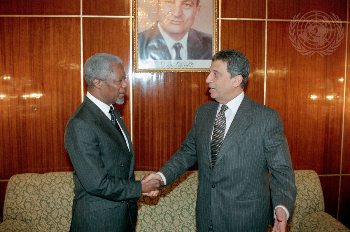 Kofi Annan, Secretary-General of the United Nations, meets with Amre Moussa, Minister for Foreign Affairs of the Arab Republic of Egypt.